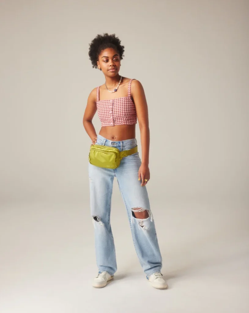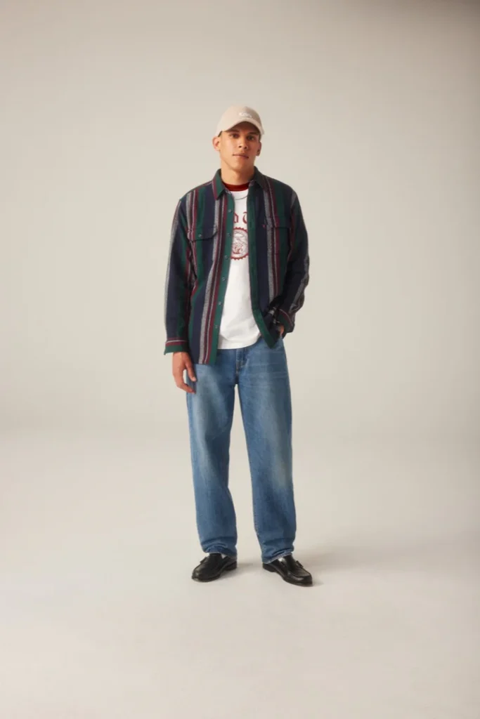 Looking for a more polished approach to how to style loose jeans? Button-up tops are your new best friend! For women, a slightly oversized Oxford produces that desirable “borrowed from the boys” look that perfectly pairs with baggy denim. For guys, go for chambray or flannel shirts that adds texture while remaining low-key.